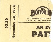 Bruce Springsteen and Patti Smith have performed onstage together a total of six times*, with the most recent of course being last week’s tribute show at Carnegie Hall, which I wrote about for both Variety and over at jukeboxgraduate.com. In the latter I mentioned a particular outing from 1976 at the Bottom Line, and in tribute to their friendship I thought I’d do a deeper dive into that particular evening.